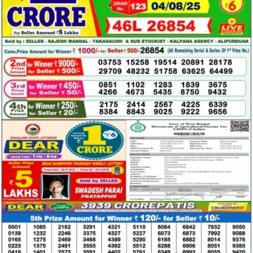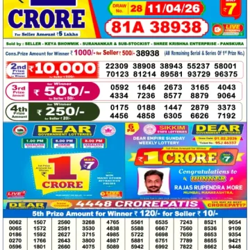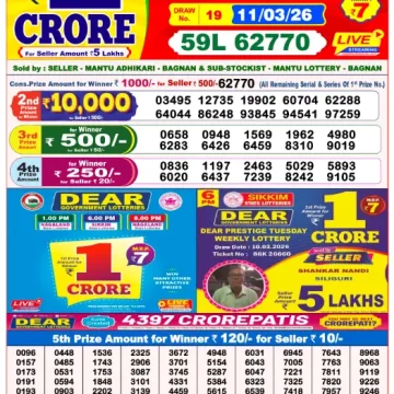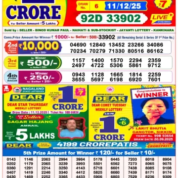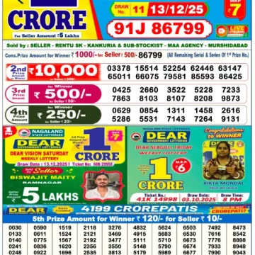 Dear Lottery Results Today – Lottery Sambad Today