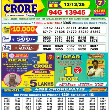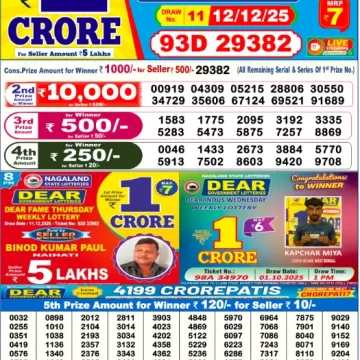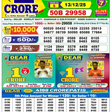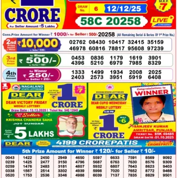 RESULT DEAR CROWN FRIDAY WEEKLY LOTTERY 12.12.2025