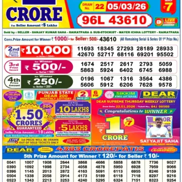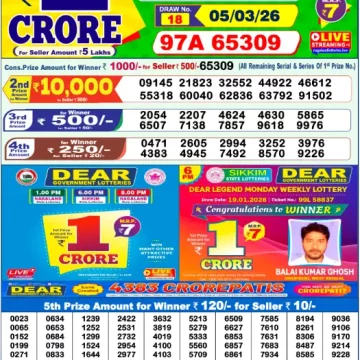 Select RESULT DEAR SHINE TUESDAY WEEKLY LOTTERY 03.03.2026 RESULT DEAR SHINE TUESDAY WEEKLY LOTTERY 03.03.2026