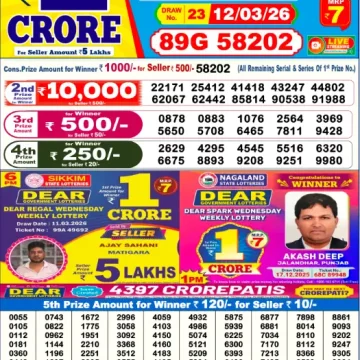 RESULT DEAR SPARK WEDNESDAY WEEKLY LOTTERY 11.03.26.