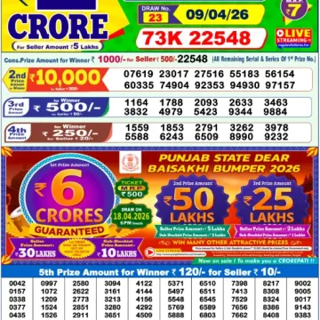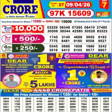 • RESULT DEAR STAR THURSDAY WEEKLY LOTTERY 09.04.2026