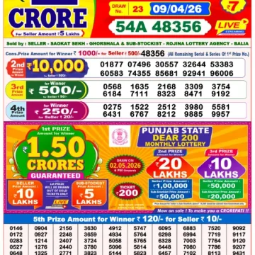 • RESULT DEAR 50 CHIEF THURSDAY WEEKLY LOTTERY 09.04.2026