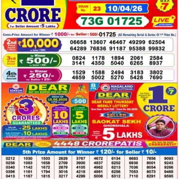 • RESULT DEAR CROWN FRIDAY WEEKLY LOTTERY 10.04.2026