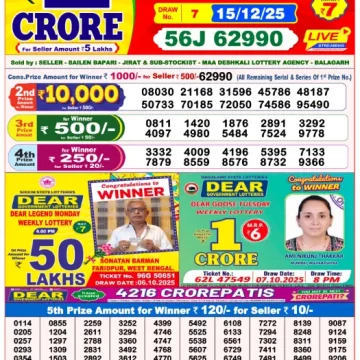 RESULT DEAR LEGEND MONDAY WEEKLY LOTTERY 15.12.2025