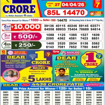 RESULT DEAR CROWN FRIDAY WEEKLY LOTTERY 03.04.2026