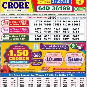 RESULT DEAR LUCKY SATURDAY WEEKLY LOTTERY 13.12.2025