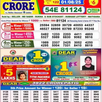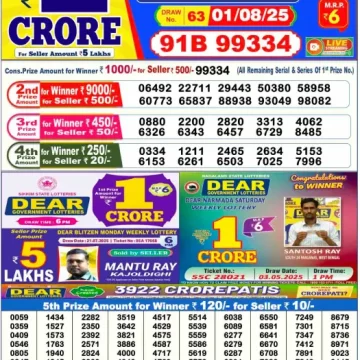 RESULT DEAR CROWN FRIDAY WEEKLY LOTTERY 12.12.2025