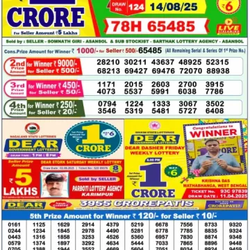 Dear Lottery Results Today – Lottery Sambad Today