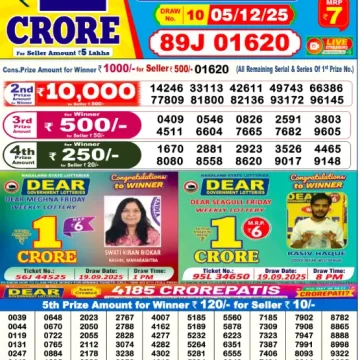 RESULT DEAR STAR THURSDAY WEEKLY LOTTERY 04.12.2025