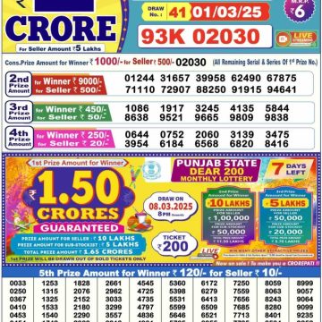 RESULT DEAR 50 RAVI SUNDAY WEEKLY LOTTERY 02.03.2025