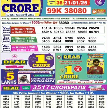 RESULT DEAR GOOSE TUESDAY WEEKLY LOTTERY 21.01.2025