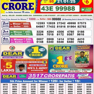 RESULT DEAR SUPER DIAMOND TUESDAY WEEKLY LOTTERY 21.01.2025