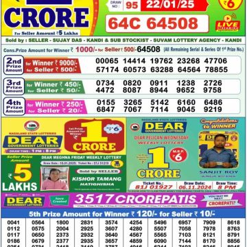 RESULT DEAR 10 ORANGE WEDNESDAY WEEKLY LOTTERY 22.01.2025