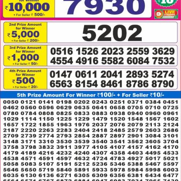 RESULT DEAR 10 FIRM MONDAY WEEKLY LOTTERY 20.01.2025