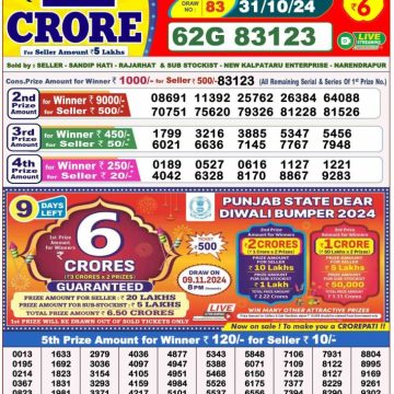 RESULT PUNJAB STATE DEAR 10 GOLD MONDAY WEEKLY LOTTERY 20.01.2025