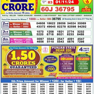 RESULT DEAR 50 JHELUM MONDAY WEEKLY LOTTERY 20.01.2025