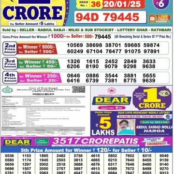 RESULT DEAR SUPER GOLD MONDAY WEEKLY LOTTERY 20.01.2025