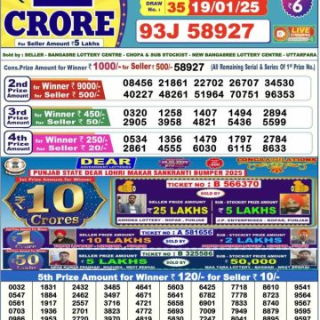 RESULT PUNJAB STATE DEAR 10 IRON SUNDAY WEEKLY LOTTERY 19.01.2025