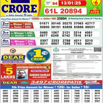 RESULT DEAR BLITZEN MONDAY WEEKLY LOTTERY 13.01.2025