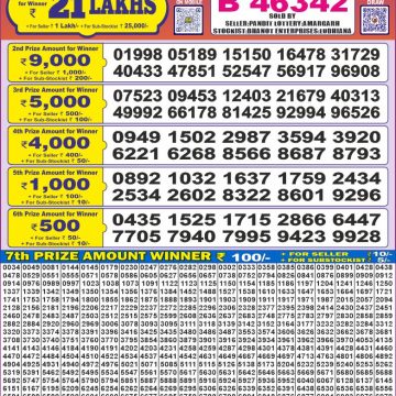 RESULT LABHLAXMI POWER SUNDAY WEEKLY LOTTERY 12.01.2025