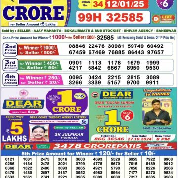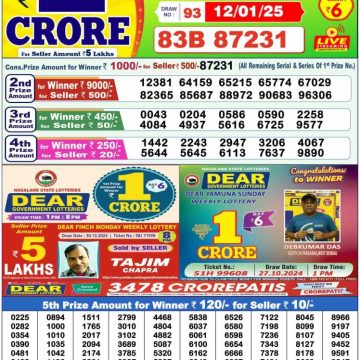 RESULT DEAR YAMUNA SUNDAY WEEKLY LOTTERY 12.01.2025