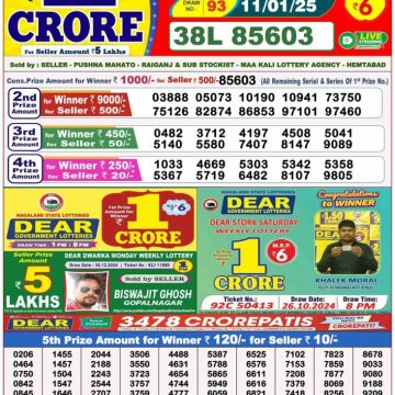 • RESULT DEAR LUCKY SATURDAY WEEKLY LOTTERY 06.12.2025