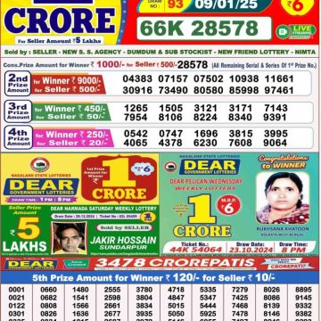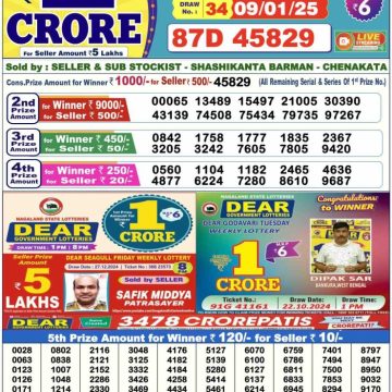 RESULT DEAR SUPER PLATINUM THURSDAY WEEKLY LOTTERY 09.01.2025