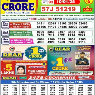RESULT DEAR MEGHNA FRIDAY WEEKLY LOTTERY 10.01.2025
