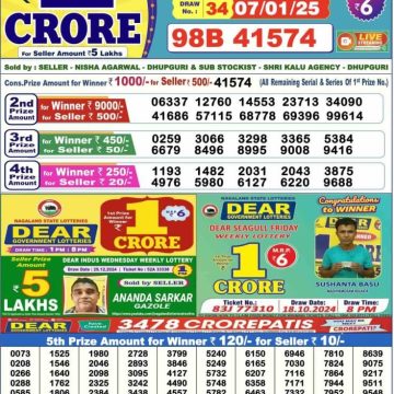 RESULT DEAR SUPER DIAMOND TUESDAY WEEKLY LOTTERY 07.01.2025