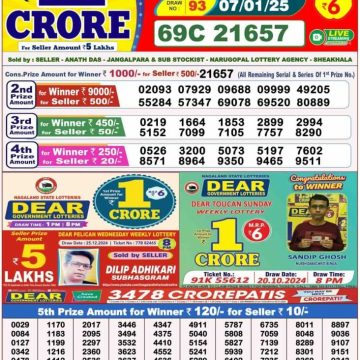 RESULT DEAR COMET TUESDAY WEEKLY LOTTERY 07.01.2025