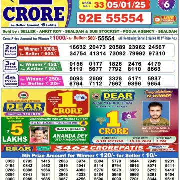 RESULT DEAR 10 WONDER SUNDAY WEEKLY LOTTERY 05.01.2025