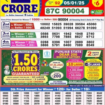 RESULT PUNJAB STATE DEAR 10 IRON SUNDAY WEEKLY LOTTERY 05.01.2025