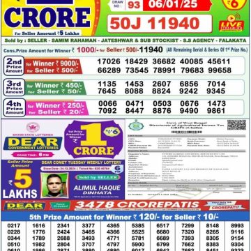 RESULT DEAR SUPER MERCURY SUNDAY WEEKLY LOTTERY 05.01.2025