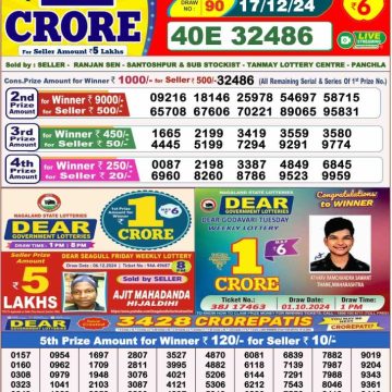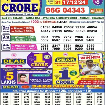 RESULT DEAR COMET TUESDAY WEEKLY LOTTERY 17.12.2024