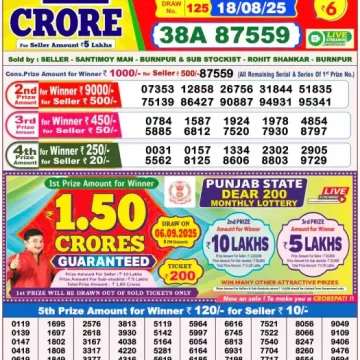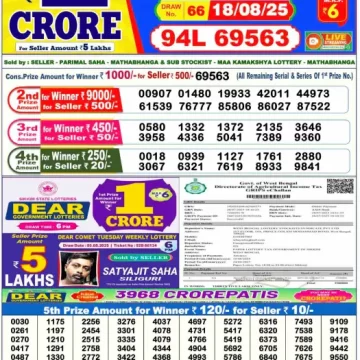 RESULT DEAR SHINE TUESDAY WEEKLY LOTTERY 02.12.2025