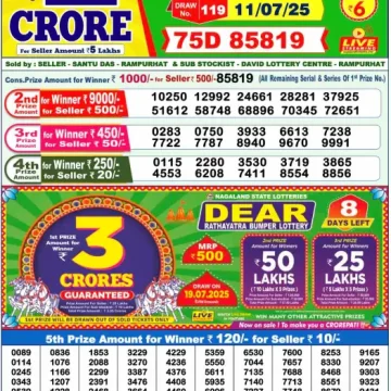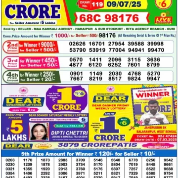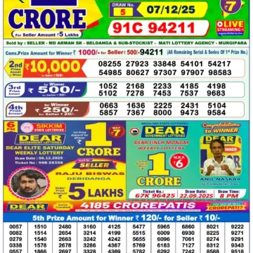 • RESULT DEAR WISH SUNDAY WEEKLY LOTTERY 07.12.2025