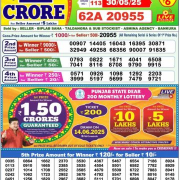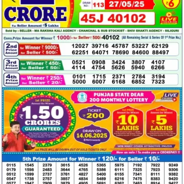 RESULT DEAR YAMUNA SUNDAY WEEKLY LOTTERY 25.05.2025