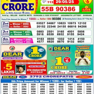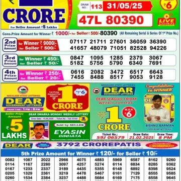 RESULT DEAR DWARKA MONDAY WEEKLY LOTTERY 26.05.2025