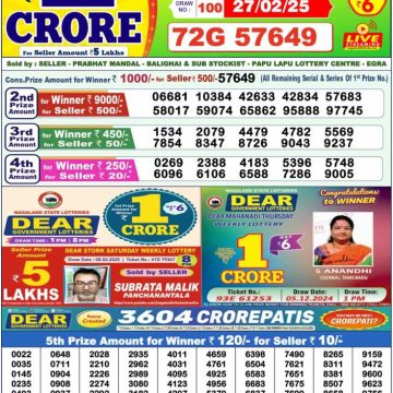 RESULT DEAR MAHANADI THURSDAY WEKLY LOTTERY 27.02.2025
