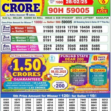 RESULT DEAR YAMUNA SUNDAY WEEKLY LOTTERY 02.03.2025