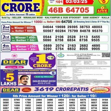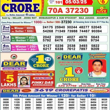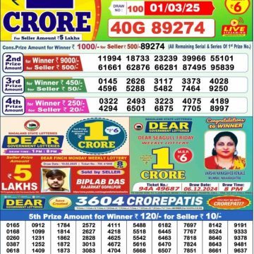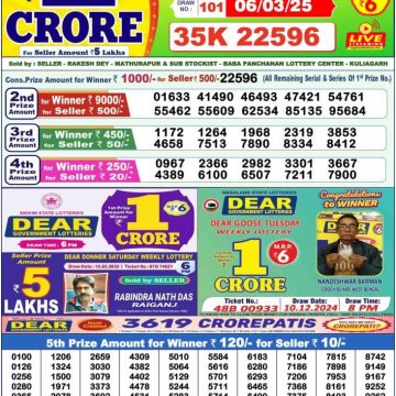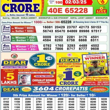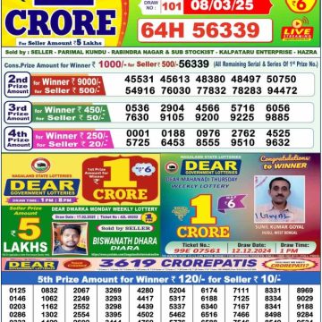 RESULT DEAR DWARKA MONDAY WEEKLY LOTTERY 03.03.2025