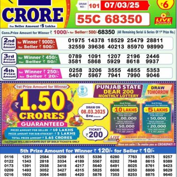 RESULT DEAR MEGHNA FRIDAY WEEKLY LOTTERY 07.03.2025
