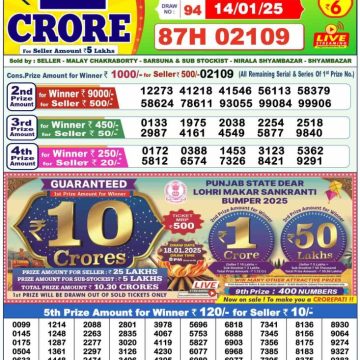DEAR GODAVARI TUESDAY WEEKLY LOTTERY 14.01.2025