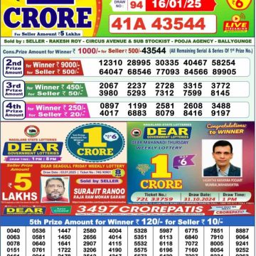 RESULT DEAR MAHANADI THURSDAY WEEKLY LOTTERY 16.01.2025