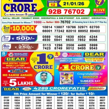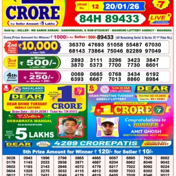 RESULT DEAR SHINE TUESDAY WEEKLY LOTTERY 20.01.2026
