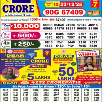 RESULT DEAR PRESTIGE TUESDAY WEEKLY LOTTERY 23.12.2025