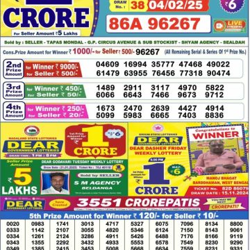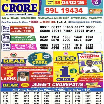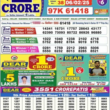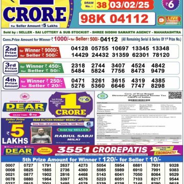 RESULT DEAR BLITZEN MONDAY WEEKLY LOTTERY 02.06.2025