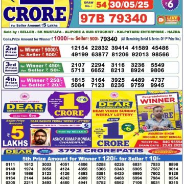 RESULT DEAR DASHER FRIDAY WEEKLY LOTTERY 30-05-2025 6PM