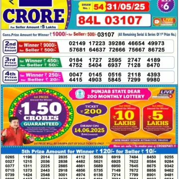 RESULT PUNJAB STATE DEAR 10 MERCURY SATURDAY WEEKLY LOTTERY 31.05.2025