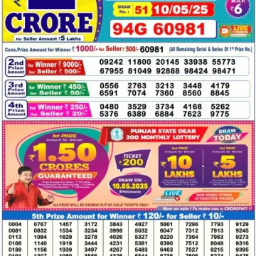 RESULT PUNJAB STATE DEAR 10 IRON SUNDAY WEEKLY LOTTERY 11.05.2025